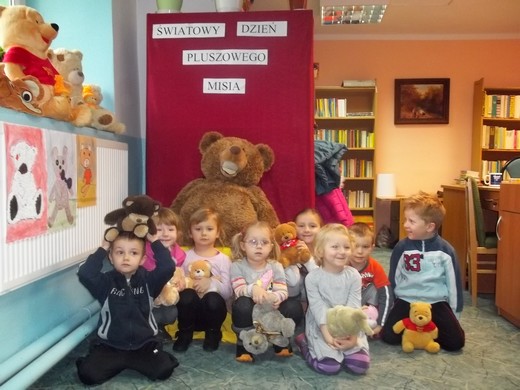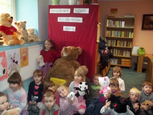 By wspólnie świętować Dzień Pluszowego Misia do Szkoły Podstawowej nr 3 w Gołdapi wraz ze swoimi paniami przyszły dzieci z Przedszkoli Bajka i U Kubusia Puchatka. Celem naszego spotkania było między innymi przybliżenie dzieciom w sposób bardzo przystępny historii powstania pluszowego misia, wyświetlenie filmu o Misiu Uszatku, kolorowanie misiów na tablicy interaktywnej, zabawa przy piosence „Pokochaj Pluszowego Misia" i wreszcie zajęcia plastyczne, podczas których przedszkolaki malowały odlewy gipsowe misiów. Zabawa była znakomita, wszystkim dopisywał świetny humor. Szkoda, że czas tak szybko minął. Do domu przedszkolaki zabrały wrażenia i kolorowe misie.