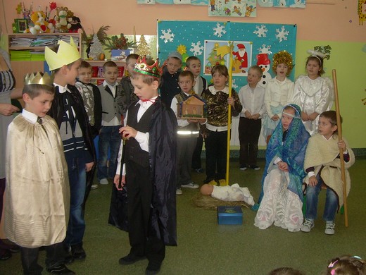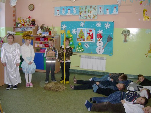 Tradycyjnie ostatni dzień przed świętami w Szkole Podstawowej im. Michała Kajki w Grabowie to czas na kultywowanie tradycji bożonarodzeniowych. Uczniowie klasy I wraz z wychowawczynią przygotowali jasełka pt. „Narodził się Zbawiciel" i zaprezentowali je dla społeczności szkolnej. Było wspólne kolędowanie, dzielenie się opłatkiem, składanie sobie życzeń. Na koniec spotkania wszyscy wychowankowie zostali obdarowani słodkimi prezentami, których sponsorem była dyrekcja Zespołu Szkół w Grabowie.