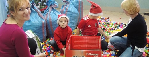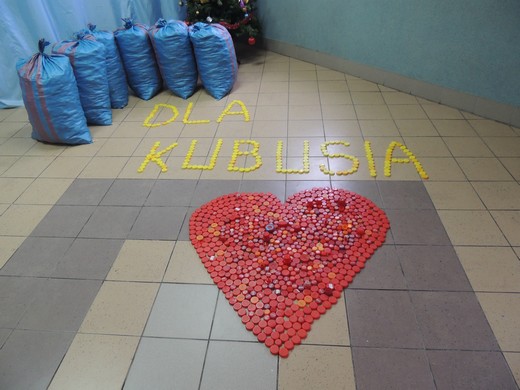 GOŁDAP. Małe, niepozorne, kolorowe, bardzo lekkie są nakrętki plastikowe. Wcześniej bez wahania wyrzucaliśmy je do kosza. Przedszkolaki, uczniowie Zespołu Placówek Edukacyjno-Wychowawczych, wychowankowie bursy szkolnej oraz pracownicy włączyli się w wielką zbiórka plastikowych nakrętek na rehabilitację Kubusia. Wspólnymi siłami uzbieraliśmy 6 worków, a w nich około 83kg nakrętek. 16 stycznia przedstawiciele samorządu uczniowskiego i drużyny harcerskiej „Giganci" przekazali nakrętki mamie Kuby, pani Katarzynie Chanc. Wierzymy, że robimy coś z sensem i mamy swój wkład. Chcemy pomagać!