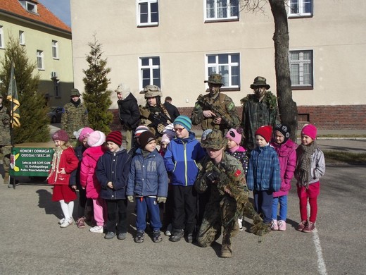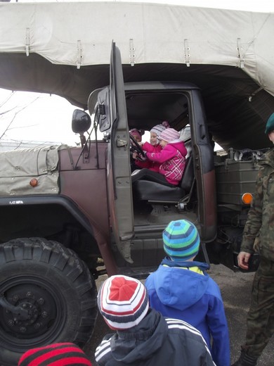 Następnego dnia dzięki zaproszeniu dowódcy JW 4808 miały one okazje zwiedzić miejsce, które codziennie widzą z okien sali - jednostkę wojskową. Wycieczka dała im radość i pogłębiła wiedzę na temat pracy żołnierzy. Z chęcią wsiadały do prezentowanych pojazdów. Z zaciekawieniem obejrzały film promujący naszą gołdapską jednostkę i zwiedziły Salę Tradycji. Po powrocie do szkoły dopytywały kiedy znowu pójdziemy do wojska. To najlepszy dowód, że wizyta była udana.