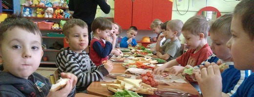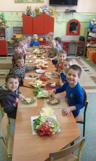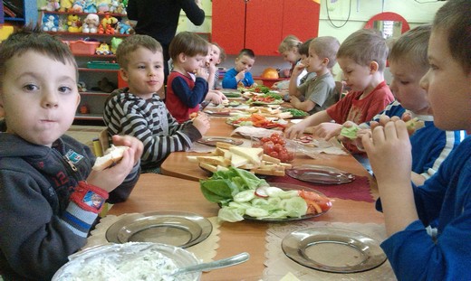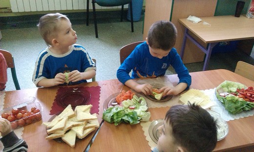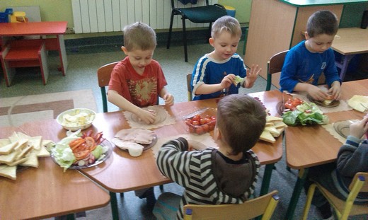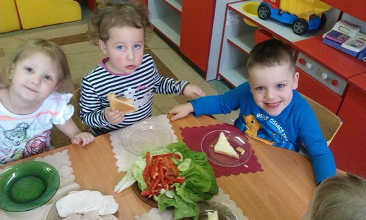 GRABOWO. Wczoraj dzieci z grupy 3- i 4-latków z przedszkola w Grabowie wspólnie przygotowywały wiosenne kanapki. Na stołach zagościły nowalijki a także wędlina, ser, jajka, twarożek oraz pieczywo. To było prawdziwe wyzwanie dla maluchów. Przedszkolaki z ogromnym zapałem zabrały się do pracy. Wkrótce na stole pojawiły się kolorowe wiosenne kanapki. Zdarzały się również o etnicznych wzorach :) Zapach wiosennych nowalijek zaostrzył apetyt naszych "milusińskich" zaś apetycznie wyglądające kanapki sprawiły, że dzieci chętnie pałaszowały wytwory swojej ciężkiej aczkolwiek bardzo przyjemnej pracy. Kulinarna przygoda zachęciła nas do dalszych wyzwań gdyż przedszkolaki już zaproponowały temat kolejnych zajęć – „sałatka owocowa" :)