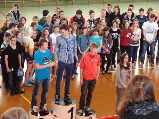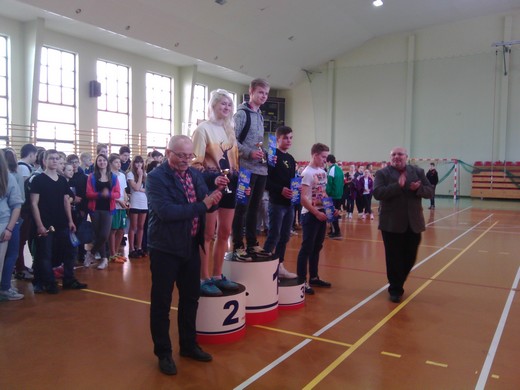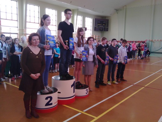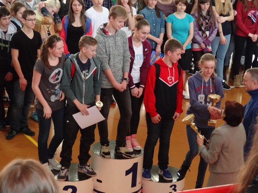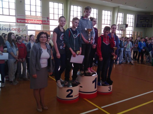 Najlepszy czas zawodów uzyskała klasa IId, która zwyciężyła w kategorii open, wygrywając główną nagrodę zawodów - Puchar Dyrektora Gimnazjum. Puchar dla zwycięskiej sztafety w pływaniu również przypadł klasie IId, a jego fundatorem był przewodniczący SZS w Gołdapi Marian Mioduszewski. Pozostałe klasy zostały nagrodzone pucharami i pamiątkowymi dyplomami. Bardzo cieszy frekwencja imprezy. W sumie w zawodach wystartowało ok. 170 zawodników. Nauczyciele wychowania fizycznego składają serdeczne podziękowania Marianowi Mioduszewskiemu za udostępnienie aparatury mierzącej czas na pływalni i pracownikom kompleksu za pomoc w sędziowaniu.