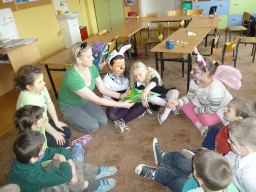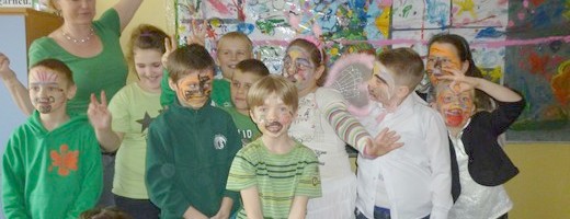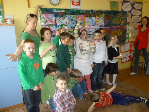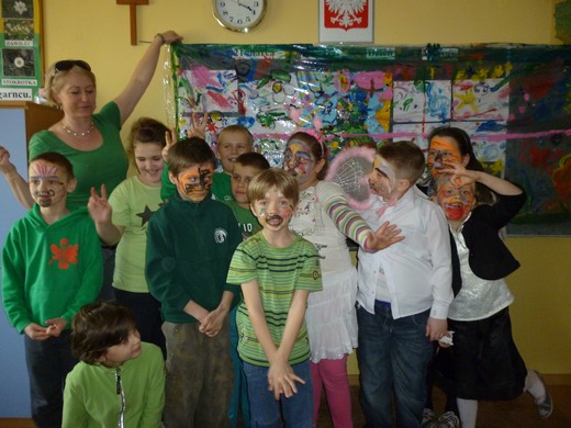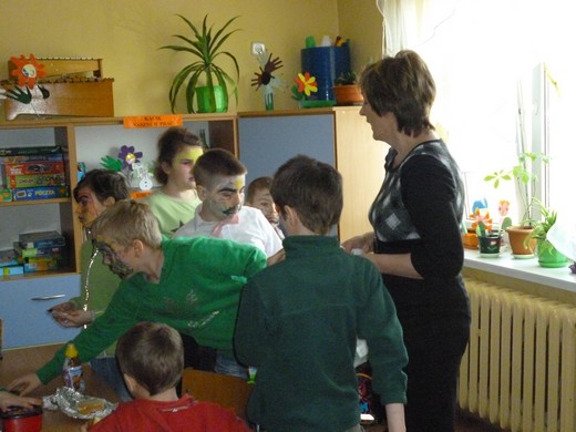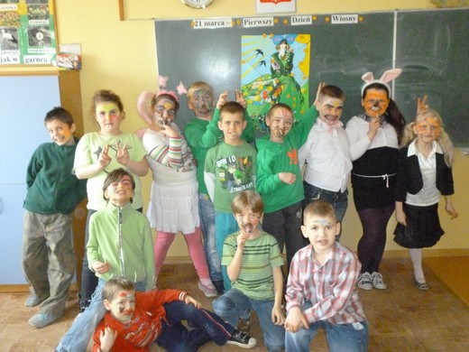 JABŁOŃSKIE. 21 marca klasy I-III ze Szkoły Podstawowej w Jabłońskich wspólną zabawą powitały wiosnę. Dzieci ubrane w zielone stroje, pomalowały wiosennie twarze i wykonywały przygotowane zadania: układały Panią Wiosnę z puzzli, wymyślały "zielone" śniadanie, "zielony" obiad i "zieloną" kolację, malowały farbami na folii wiosenną łąkę. W przerwie między zadaniami bawiły się przy muzyce. Dyrektor szkoły Aleksandra Retel rozdała uczniom słodki upominek. Odwiedzili nas również goście. Wszyscy świetnie się bawiliśmy.