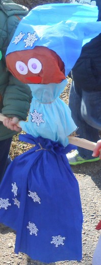 Barwny korowód niosący kolorowe kwiatki oraz kukłę wykonaną z materiałów przyrodniczych wybrał się nad rzekę, by w ten sposób odegnać zimę.