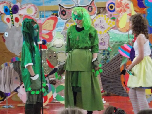 Uczniowie przedstawili wyniki swojej całorocznej pracy przy tworzeniu baśni muzycznej „Calineczka i Cztery pory roku Vivaldiego". Oprócz umiejętności wokalnych, tanecznych, instrumentalnych i plastycznych, uczniowie zaprezentowali też swoje talenty aktorskie. Przed zebraną na sali publicznością odbył się wspaniały muzyczny spektakl w barwnej, prawdziwie baśniowej scenerii. Młodzi twórcy prezentując historię Calineczki, posługiwali się nie tylko językiem polskim. Wiele partii dialogowych wygłaszali w języku angielskim, co było dodatkowym atutem przedstawienia. Pojawiające się znienacka w wypowiedziach bohaterów słówka w języku angielskim, wprowadziły dużą dawkę humoru i wywoływały salwy śmiechu, zwłaszcza wśród najmłodszej publiczności.