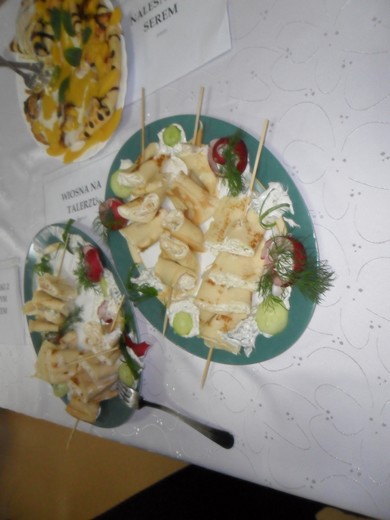 Zadaniem uczniów było przygotowanie wybranych przez siebie dań w ciągu dwóch godzin. Komisja konkursowa miała niełatwy orzech do zgryzienia, bowiem potrawy były wyjątkowo smaczne i pomysłowo wykonane. Wśród szkół przysposabiających do pracy nasza uczennica Elżbieta Sadowska zajęła III miejsce za naleśniki z serem i musem brzoskwiniowym. Wiosna na talerzu to popisowe danie naszego wychowanka Pawła Sarosiaka, dzięki któremu zdobył wyróżnienie. Obojgu serdecznie gratulujemy!