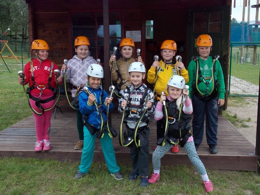 JABŁOŃSKIE. 2 czerwca klasa II i III ze Szkoły Podstawowej w Jabłońskich wybrała się na wycieczkę do Zajazdu Piękna Góra Rudziewicz. Dzieci mogły spróbować sił w parku linowym pokonując trasę leśną. Kręgielnia też okazała się wspaniałą zabawą. Samochodem terenowym zwiedzaliśmy gospodarstwo hodowli dzikich zwierząt w Zatykach. Dzień pełen wrażeń zakończyliśmy lodami w kawiarni obrotowej na Pięknej Górze.