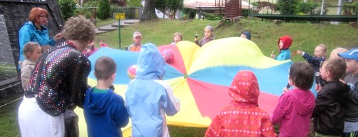 Po części artystycznej wszyscy udali do Ośrodka Wypoczynkowego „Leśny Zakątek", gdzie właściciele przygotowali wiele atrakcji m.in.: ognisko, lody i inne słodycze. Przybył też do nas klaun, który przez długie godziny zabawiał dzieci i rodziców. Wykazał się nie tylko poczuciem humoru, ale tez dużą sprawnością fizyczną, gdyż prowadził wszystkie zabawy ruchowe.