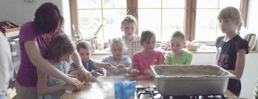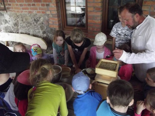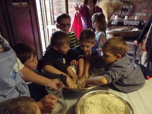 GOŁDAP. W piątkowy ranek 6 czerwca, 5-latki A, 0A i uczniowie z klasy IIIA z SP3 wyruszyli na wycieczkę do gospodarstwa "Ciche Wody" w okolicach Buder. Na miejscu dzieci przywitali przemili gospodarze - państwo Anna i Wojciech Oczkowscy wraz z czworonożnym przyjacielem Nemo. Zaprosili wycieczkowiczów do wspólnej zabawy. Zadaniem dzieci było odnalezienie poukrywanych "owieczek" z drewna, nadanie im imion i odgadnięcie zagadek związanych z gospodarstwem i jego otoczeniem. Następnie dzieci miały możliwość obejrzenia stada owiec Skudde. Kolejnym punktem wizyty było wspólne zagniatanie ciasta na chleb i drożdżówki. Dzieci musiały również samodzielnie zmielić ziarno na mąkę. Pani Ania opowiedziała dzieciom o sposobach wypiekania chleba, a pan Wojtek wytłumaczył dlaczego gospodarstwo nazywane jest ekologicznym. Z powodu brzydkiej pogody nie mogliśmy udać się na ognisko i zabawy na polanie, jednak państwo Oczkowscy zadbali o swoich gości i podali nam kiełbaski pieczone w piekarniku. Poczęstowano nas kompotem domowej roboty z cytryny i mięty oraz własnoręcznie wykonanym pasztetem z wołowiny. Dzieci zajadały z wielkim apetytem. Na koniec otrzymały upieczony chleb, który wcześniej mieszały i przepyszne drożdżówki. To była bardzo udana wizyta. Dziękujemy właścicielom "Cichych Wód" za tak miłe przyjęcie. Mamy nadzieję, że nie było to nasze ostatnie spotkanie.