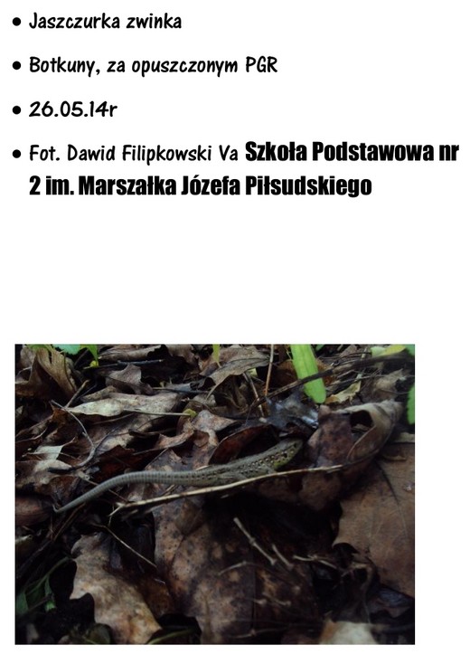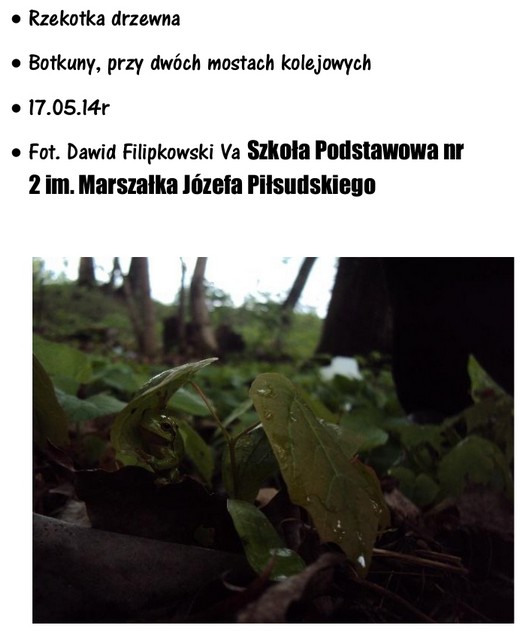 Z przesłanych na konkurs prac najciekawsze okazały się fotografie Dawida Filipkowskiego (kl. Va, SP2) z rzekotką drzewną w roli głównej. II miejsce jury przyznało Weronice Adamczyk (kl. VI, SP2), a III miejsce Agnieszce Gutowskiej (kl. VI, SP2). Laureaci otrzymają dyplomy i nagrody książkowe podczas apelu na zakończenie roku szkolnego. Gratulujemy!