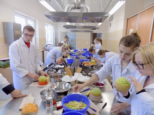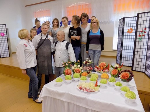 GOŁDAP. 25 i 26 czerwca odbył się w Zespole Szkół Zawodowych w Gołdapi kurs carvingu. Poprowadził go mistrz Polski, brązowy medalista Mistrzostw Europy w Carvingu Moskwa 2013, dwukrotny brązowy medalista Big Carving Contest Innsbruck 2013 Łukasz Szewczyk. To pionier i propagator carvingu w Polsce, współautor jednej z najpopularniejszych polskich książek o tej tematyce. Wspierał go Marek Adamski, specjalista w dziedzinie carvingu i kuchni molekularnej, zdobywca wielu prestiżowych nagród w konkursach gastronomicznych.