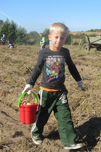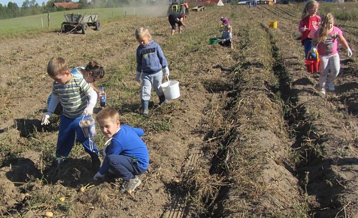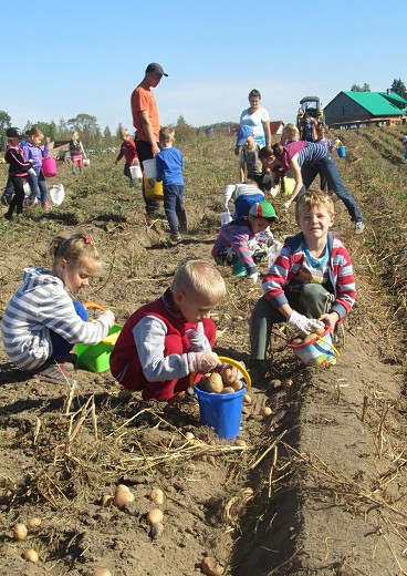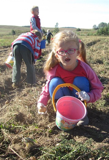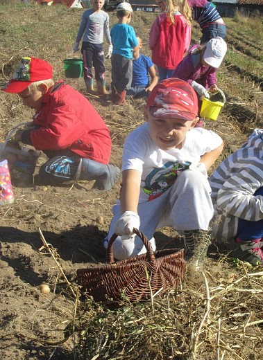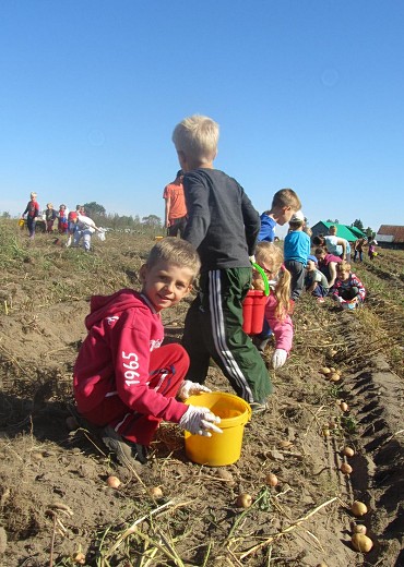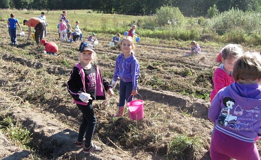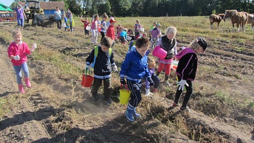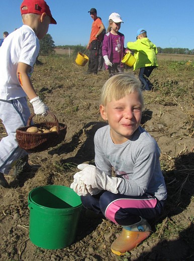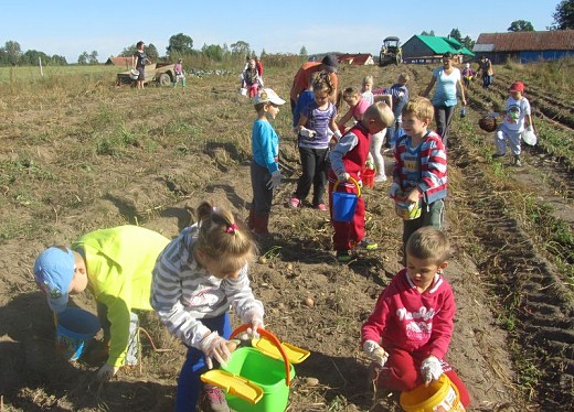 GOŁDAP/LISY. We wrześniu dzieci z grupy pięciolatków B i C ze Szkoły Podstawowej nr 3 w Gołdapi wraz z wychowawczyniami Iwoną Poredą i Ewą Kulikowską wybrały się kolejny raz do gospodarstwa rolnego państwa Beaty i Włodzimierza Wasyliszynów w Lisach. Tym razem na wykopki, które zostały zorganizowane przez Gołdapski Fundusz Lokalny. Maluchy miały okazję zobaczyć jak wykopuje się ziemniaki, a także aktywnie i z uśmiechem na twarzy mogły uczestniczyć w ich zbieraniu. Każde dziecko samodzielnie wysypywało ziemniaki na wóz. Po skończonej pracy na pięciolatki czekało ognisko, przy którym piekły kiełbaski i podpłomyki. Radosne uśmiechy na twarzach dzieci i ich zadowolenie to był najlepszy dowód, że wykopki były niezapomnianym przeżyciem i dobrą zabawą.