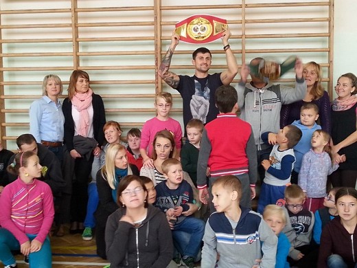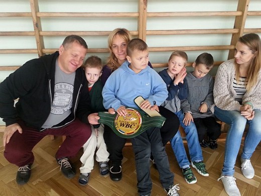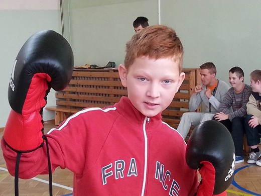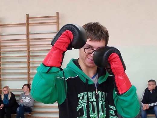 GOŁDAP. 16 października w ZPEW w Gołdapi gościli: mistrz świata w boksie Przemysław Opalach, jego trener Marek Majewski oraz wicemistrz Polski w kickboxingu Damian Szafran. Przeprowadzili oni pokazowy trening bokserski z udziałem wychowanków zespołu. Można było podziwiać trofea i akcesoria bokserskie, a także zrobić pamiątkowe zdjęcie z mistrzem