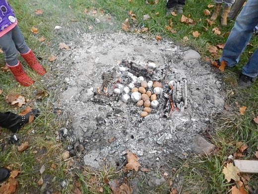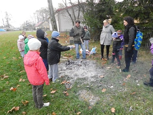 Po konkursach i zabawach dzieci mogły skosztować pyszną babkę ziemniaczaną wykonaną przez panią Annę Orzeł. Nie zabrakło również słodkiego poczęstunku. Punktem kulminacyjnym było ognisko, w którym piekły się przepyszne ziemniaki i jabłka. Impreza przebiegła w atmosferze śmiechu i radości, a zapach pieczonych jabłek i ziemniaków ciągnął się za uczestnikami święta do końca dnia.