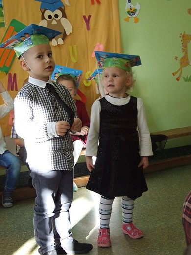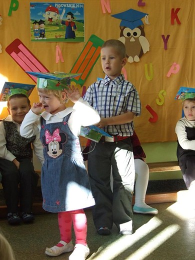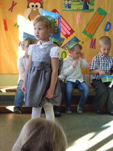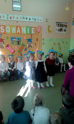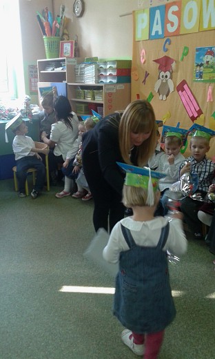Najważniejszym punktem programu było złożenie przyrzeczenia „dzielnego przedszkolaka" oraz pasowanie na przedszkolaka przez wicedyrektor Wiolettę Janik. Wszystkie ¾-latki były z siebie bardzo dumne, tak jak i dumna z nich była pani wychowawczyni. Dzieci otrzymały pamiątkowe dyplomy oraz drobne upominki.