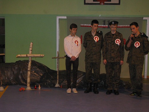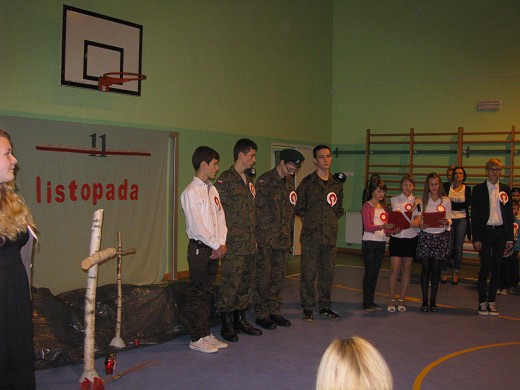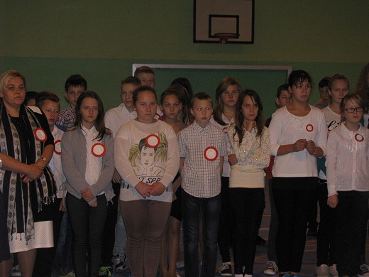 GRABOWO. 7 listopada w Zespole Szkół w Grabowie obchodzono Narodowe Święto Niepodległości. Uczniowie klasy IIIa gimnazjum we współpracy z uczennicami szkoły podstawowej przygotowali montaż słowno-muzyczny dotyczący tego najważniejszego dla Polaków święta. Uroczysty apel stał się okazją do wspólnego przeżywania ważnych momentów dziejowych. Warto znać historię naszego kraju i kultywować tradycje patriotyczne. Społeczność Zespołu Szkół w Grabowie udowodniła to swoją postawą, nie tylko poprzez właściwy strój i zachowanie powagi, ale także poprzez symboliczne kotyliony, które uczniowie wykonali samodzielnie.