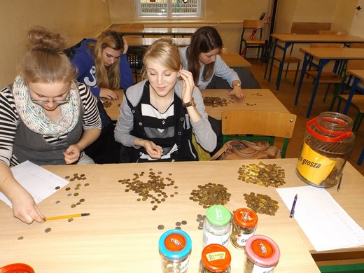 Zebrane pieniądze młodzież segregowała nominałami i liczyła na zajęciach pozalekcyjnych. Była to trudna i żmudna praca, ale sprawiła uczniom wiele zadowolenia i satysfakcji. Uzyskana suma pieniędzy ze zbiórki być może nie jest rekordowa ale mamy nadzieję, że za rok będzie wyższa.