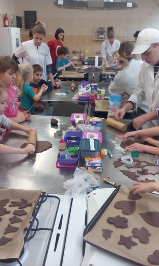 GOŁDAP. Grudzień, to czas szczególny, zwłaszcza w kuchni polskiej. Kultywowanie tradycji świąt Bożego Narodzenia w klasach gastronomicznych Zespołu Szkół Zawodowych w Gołdapi jest pielęgnowane od lat. Zaczęło się dwanaście lat temu od pieczenia i dekorowania pierniczków przez najmłodsze przedszkolaczki. Z każdym rokiem nasze działania się rozszerzają. Obecnie pracownię gastronomiczną odwiedzają również uczniowie z klas podstawowych. Zajęcia przebiegają w ciepłej i świątecznej atmosferze. Nasi goście pracują we współpracy ze starszą młodzieżą, co wywołuje u jednych i drugich niepowtarzalne emocje. Jest to kształcąca forma edukacji i świetna zabawa. W tym roku nasza pracownia zamieniła się w kuchnię świętego Mikołaja". Pachniało w niej piernikiem od tworzonych świątecznych wyrobów. Szczególnym uznaniem cieszyły się zaprojektowane i w pełni własnoręcznie wykonane kompozycje bożonarodzeniowe. Jest nam niezmiernie miło, że wysiłki uczniów są ciągle doceniane wśród lokalnego środowiska. Nad całością czuwała nauczycielka przedmiotów gastronomicznych Małgorzata Tałejszys.