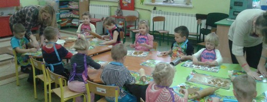 GRABOWO. Święta tuż tuż, dlatego we wtorek (16/12) przedszkolaki z Grabowa robiły wspólnie z paniami pyszne świąteczne pierniki. Ciasto było już gotowe. Każde z dzieci otrzymało jego kawałek, po czym musiało je rozwałkować i powycinać foremkami różne wzory. Wszystkim podobało się wykrawanie świątecznych kształtów: choinek, gwiazdek, bałwanków i aniołków przy pomocy foremek. Przygotowanie ciasteczek bardzo się dzieciom podobało, a w przedszkolu unosił się wspaniały aromat pieczonych pierniczków, który wprawiał wszystkich w cudowny, świąteczny nastrój.