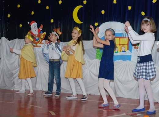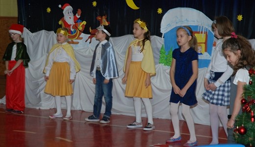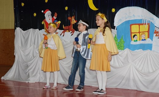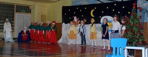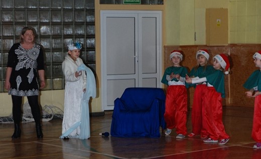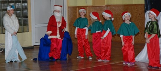 Całą historię, która przytrafiła się Mikołajowi, Elfom i Pani Zimie opowiedziały gwiazdeczki z księżycem, a uradowane dzieci ze spotkania z tak wspaniałym gościem dziękowały pięknymi wierszami i piosenkami. Na zakończenie dyrektor szkoły złożył wszystkim życzenia świąteczne.