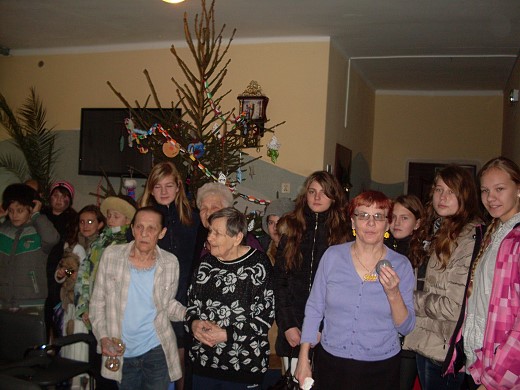 Drzewko otrzymaliśmy z Nadleśnictwa Olecko w ramach współpracy z Lasami Państwowymi. 19 grudnia mieszkańcy DPS ,,Zacisze" obejrzeli jasełka przedstawiające wydarzenia związane z narodzinami dzieciątka Jezus. Potem było wręczanie upominków, składanie życzeń i wspólne kolędowanie. Pensjonariusze dziękowali serdecznie za występ i poczęstowali dzieci cukierkami . Na pożegnanie uczniowie zostali zaproszeni na kolejne spotkanie za rok. Ta wizyta wniosła w życie mieszkańców domu radość i uśmiech.