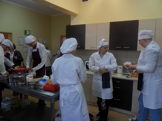 BARTOSZYCE. Troje uczniów z Zespołu Placówek Edukacyjno-Wychowawczych w Gołdapi reprezentowało Szkołę Przysposabiającą do Pracy podczas Wojewódzkiego Konkursu Kulinarnego, który odbył się 19 marca w Bartoszycach. Temat przewodni brzmiał „Gotuj na szóstkę - potrawy kuchni staropolskiej". Uczestnicy byli oceniani w dwóch kategoriach: zasadnicza szkoła zawodowa oraz szkoła przysposabiająca do pracy. O pierwsze miejsce w kategorii SPdP walczyło aż osiem zespołów z: Braniewa, Mrągowa, Olsztyna, Szczytna, Bartoszyc, Ełku, Ostródy oraz z Gołdapi. Jury oceniało smak potrawy, jej prezentację, sposób przygotowania, wygląd stanowiska podczas pracy oraz pracę zespołową. W trakcie wykonywania zadania członkowie jury bacznie przyglądali się pracy uczniów i oprócz wiedzy praktycznej sprawdzali wiedzę teoretyczną poprzez zadawanie licznych pytań. Nasi uczniowie udzielili wszystkich poprawnych odpowiedzi. Na koniec został wyłoniony zwycięzca przez jury w składzie: