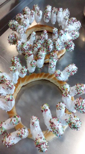GOŁDAP. W dniach 30 i 31 marca w Zespole Szkół Zawodowych w Gołdapi odbyły się Dni Gastronoma. W jego ramach odbyły się: kiermasz wielkanocny i konkurs na najładniejszą pisankę. Wystawione były własnoręcznie wykonane koszyki z ciasta drożdżowego udekorowane słodką niespodzianką i baranki z ciasta piaskowego wykończone smakowitą „wełenką". Zajęcia pozwoliły wykazać się uczniom kreatywnością, umiejętnością pracy w grupach, zdrową konkurencją i wielkim zaangażowaniem. Warsztaty nie były tylko treningiem dla uczniów, ale miały na celu promocję szkoły oraz kultywowanie tradycji świąt wielkanocnych. Uczestnikami byli przede wszystkim uczniowie klas gastronomicznych, szkolni wolontariusze i nauczyciele. Nad całością czuwała nauczycielka przedmiotów gastronomicznych Małgorzata Tałejszys.