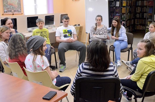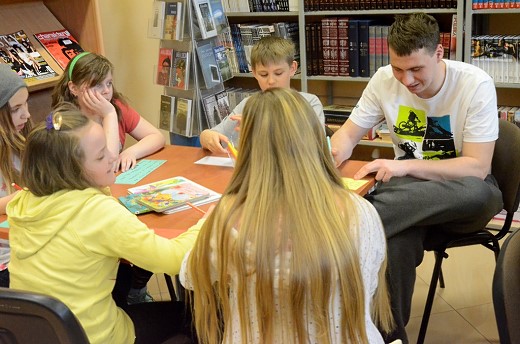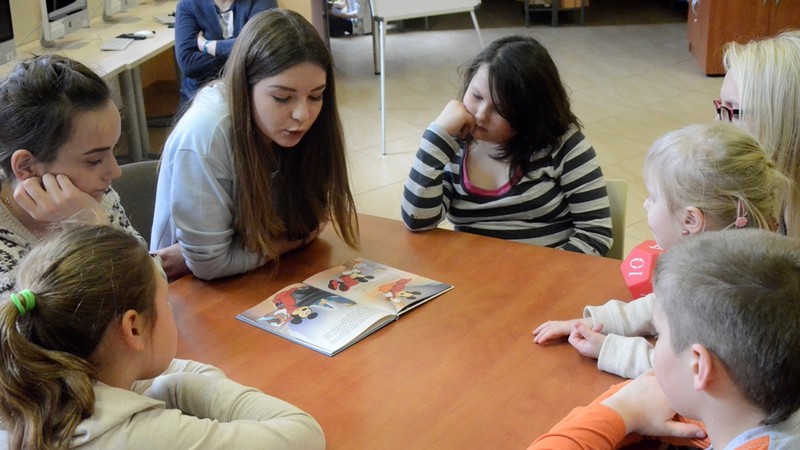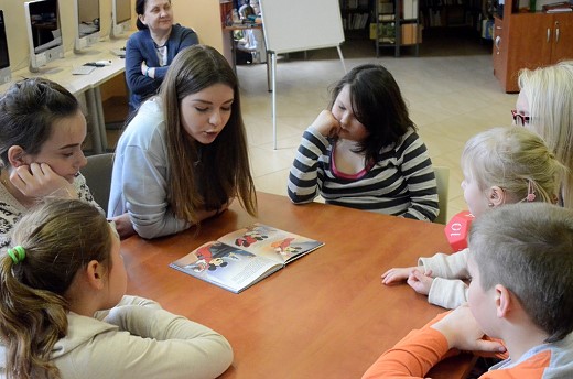 Dnia 18 kwietnia 2015 w bibliotece publicznej odbyło się spotkanie DKE działającego przy Gimnazjum nr 1 im. Noblistów Polskich w Gołdapi, ale nie tylko dla członków, lecz dla wszystkich chętnych do poznania czegoś w miejsce komputera. Cel spotkania – zachęta do czytania i pokazanie, że obcowanie nie musi być nudne. Skoro zachęcać to od najmłodszych lat, bo czym skorupka za młodu nasiąknie, to na starość... jak znalazł. Zatem bardzo byliśmy radzi, że na nasze spotkanie przybyły dzieci w granicach od 3 do10 lat (największa grupa). I nastolatki, a nawet dorosłe osoby (rodzice, bibliotekarze, nauczyciele).