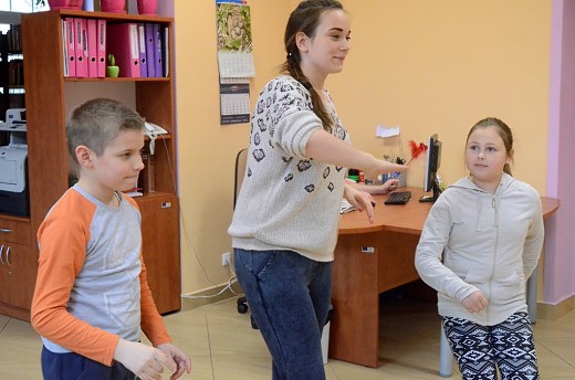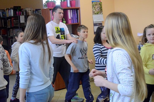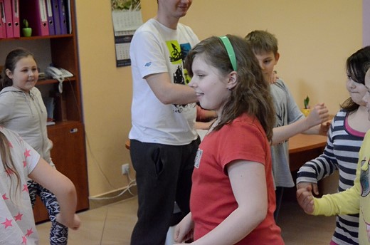 Po „włączeniu" swojej wyobraźni postanowiliśmy się trochę rozruszać, mianowicie jedna osoba czytała wybrany wierszyk, np. znaną „Lokomotywę '', a reszta osób wykonywała to, co było czytane. Przekazywaliśmy treść niewerbalnie. Było i tradycyjne czytanie nietradycyjną metodą/techniką „daj głos".