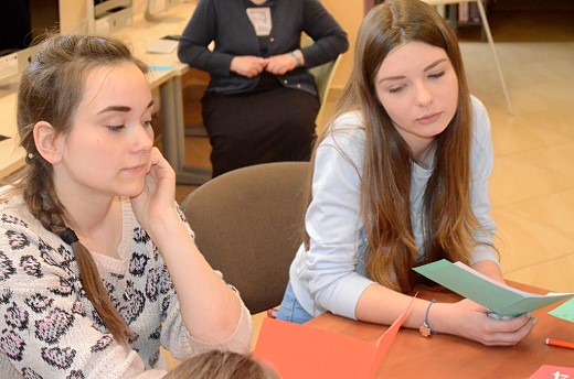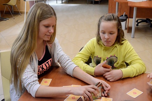 Na początek, aby rozluźnić atmosferę (bo mało kto kogo znał) zapoznaliśmy się ze sobą dzięki zabawie, zapamiętując swoje imiona Potem, siedząc w kole, ponumerowaliśmy się od 1 do 12 i rzuty nietypową kostką wyłoniły kapitanów 2 drużyn, którzy stworzyli grupy. I się zaczęło. Pierwszy cykl zadań miął na celu uświadomienie jak się rodzi książka, opowiadanie (od pomysłu do rękopisu lub „komputeropisu". Obie grupy wymieniły się swoimi opowieściami po czym nadaliśmy tytuł każdej opowieści. To była okazja tworzenia opowieści i wzajemnej oceny, ale bez rywalizacji. Włączając swoją wyobraźnię właśnie w taki lub podobny sposób każdy może utworzyć swój wierszyk, historię lub bajkę. Zrozumieliśmy, jak wiele trzeba, by powstała książka.