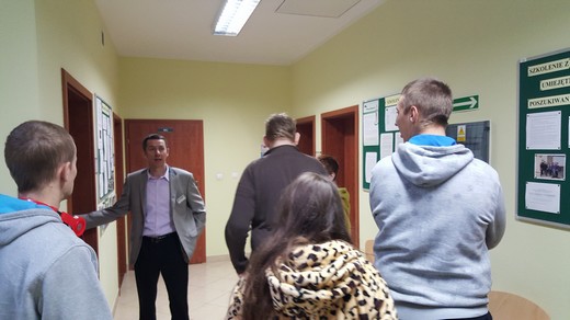 GOŁDAP. 30 listopada uczniowie Zespołu Placówek Edukacyjno-Wychowawczych z klas IIIA i IIIB Szkoły Przysposabiającej do Pracy udali się na wycieczkę do Powiatowego Urzędu Pracy w Gołdapi. Przywitał nas dyrektor Wojciech Hołdyński i zaprosił do sali konferencyjnej, w której zapoznał uczniów ze specyfiką pracy urzędu oraz formami pomocy, jakich udziela urząd osobom bezrobotnym i poszukującym pracy, w tym osobom niepełnosprawnym. Wycieczka była bardzo udana, wzbogaciła naszych uczniów o nowe informacje, które będą mogli wykorzystać w przyszłości. Uczniowie podziękowali dyrektorowi za umożliwienie zorganizowania wycieczki, miłe spotkanie i poświęcony czas wręczając własnoręcznie wykonaną pracę.