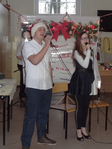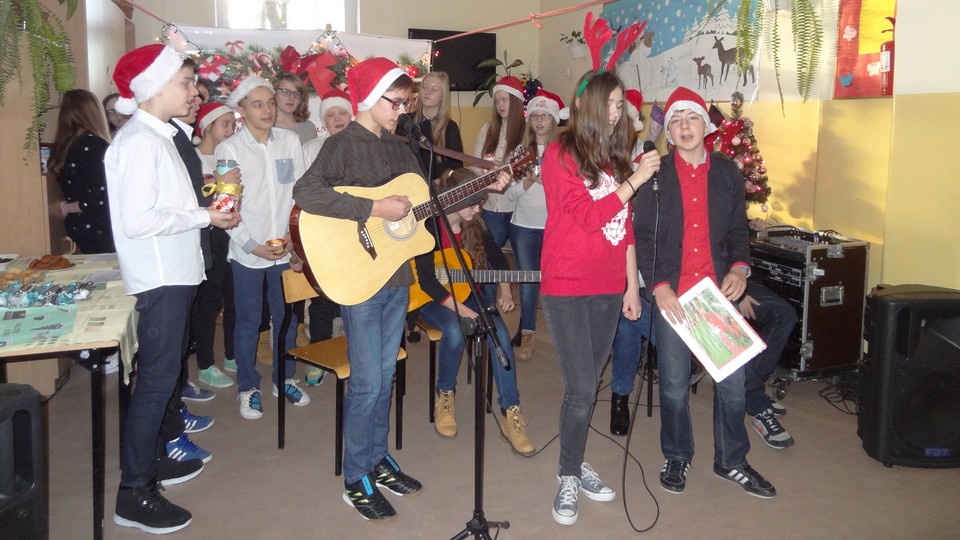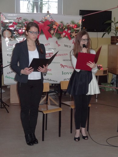 GOŁDAP. Wczoraj w Gimnazjum nr 1 im. Noblistów Polskich w Gołdapi odbyło się przedstawienie pod tytułem „Świąteczne tradycje w wielu językach”. W atmosferze zbliżających się świąt Bożego Narodzenia, spokoju, przyjaźni, ciepła i radości, uczestnicy, a było ich prawie stu, prezentowali wiersze, piosenki i scenki o tematyce zimowej i świątecznej w językach angielskim i niemieckim. Uczniowie klasy 2a słodko (sami upiekli świąteczne ciasteczka) podsumowali także swój projekt edukacyjny „Jak Niemcy i Anglicy świętują Boże Narodzenie?”. Uczestnicy zapraszali nas do cudownej krainy, w której nie ma samotności, obojętności, kłótni i przemocy, za to są odwaga, przyjaźń i radość. Nie zabrakło Mikołaja, choinki, reniferów, dzwoneczków, prezentów (tylko rózgi gdzieś się pochowały). Młodzież chętnie wzięła udział w przedstawieniu. Wszyscy byli wspaniali.