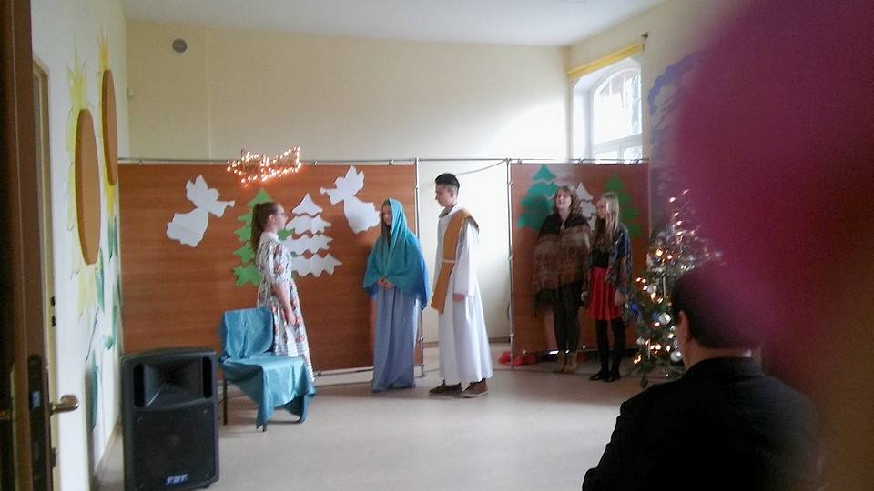 GOŁDAP. Boże Narodzenie to czas, kiedy wszyscy staja się dla siebie bardziej życzliwi, milsi i zapominają o wszelkich sporach oraz waśniach. Aby podkreślić wyjątkowy charakter świąt, już tradycyjnie jak co roku młodzież przygotowała jasełka dla pracowników Gimnazjum nr 1 im. Noblistów Polskich w Gołdapi, które przybliżyły wszystkim atmosferę tego szczególnego okresu.