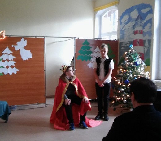 Tegoroczne przedstawienie „Jasełka, trochę pobożne” przygotowała młodzież z kl. Ig, Ie i IIa pod opieką B. Gojlik, E. Ruszewskiej i P. Magielnickiej. Tematem inscenizacji była walka między dobrem i złem. Po przedstawieniu publiczność nagrodziła uczniów gromkimi brawami, a dyrektor podziękowała młodzieży i przekazała im w imieniu wszystkich zgromadzonych życzenia udanych, radosnych świąt oraz odpoczynku i wyczekiwanych prezentów.