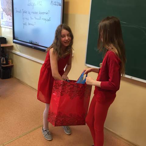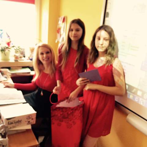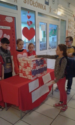 Nasza szkoła w tym dniu wyglądała inaczej niż zwykle. Wszędzie czaiła się miłość. Już od rana panował radosny nastrój. Zarówno uczniowie jak i pracownicy szkoły prezentowali symbole miłości. Jedni przepieli serduszka na ubrania, inni ubrali się na czerwono, a co najważniejsze - wszyscy byli dla siebie mili. Szkolne „amory miłości” zajęły się dostarczaniem walentynkowej poczty, a było tego sporo. Adresatom walentynek było bardzo miło, choć niektórzy pewnie jeszcze długo będą zastanawiać się, kto był ich nadawcą. Może kiedyś się dowiedzą.