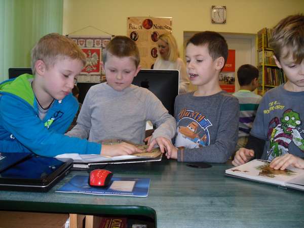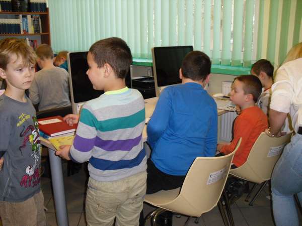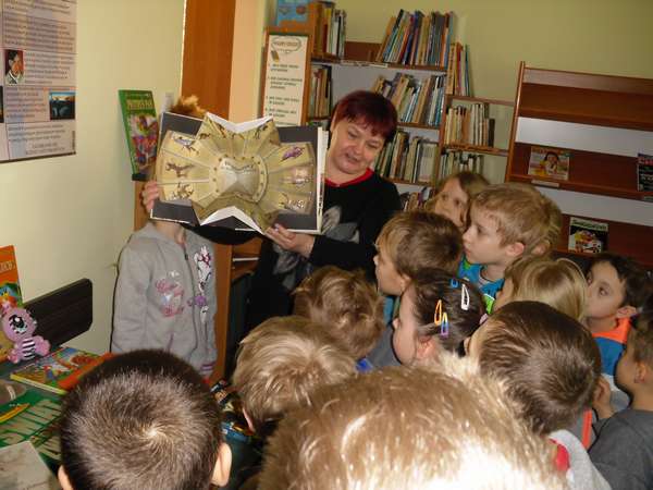 Na początku mali goście zmierzyli się z zagadkami, które rozwiązywali chętnie i szybko. Zapoznali się z regulaminem wypożyczalni, czytelni i pracowni komputerowej. Dowiedzieli się jak zostać czytelnikiem i jakie są zasady korzystania z księgozbioru. W skupieniu wysłuchali wiersza Jana Huszczy pt."Skarga książki", który był wstępem do pogadanki o poszanowaniu książek. Zwiedzili pomieszczenia biblioteczne i z entuzjazmem przeglądali bogato ilustrowane pozycje o różnej tematyce.