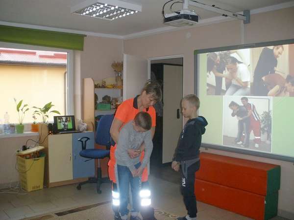 Co jakiś czas w szkole organizowane są tego typu spotkania, by dzieci wiedziały, jak należy postępować w sytuacjach pourazowych i powypadkowych. Dzieci mogły zobaczyć sytuacje, w których mogą się znaleźć (wyświetlane były na tablicy interaktywnej) oraz mogły wykonać podstawowe czynności przedmedycznej pomocy. Pani ratownik powiedziała także o szkodliwości i skutkach zażywania dopalaczy.