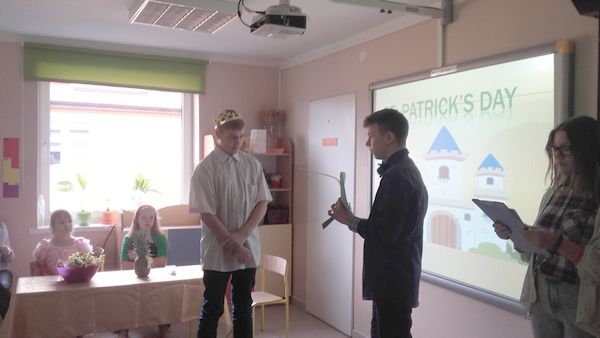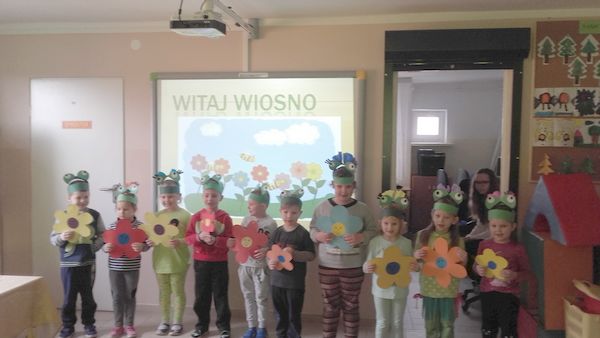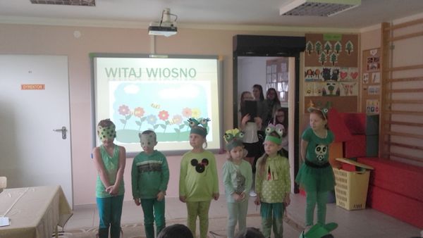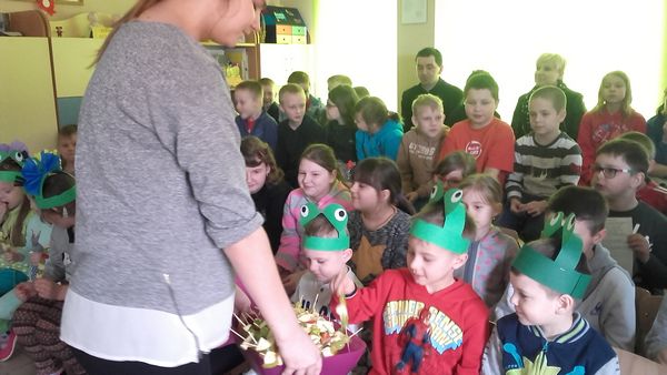 GOŁDAP. . 21 marca uczniowie Szkoły Podstawowej w Galwieciach uroczyście powitali wiosnę. Tego dnia obchodzili również Dzień Świętego Patryka. Uczniowie kl. IV-VI przedstawili inscenizację opowiadającą o losach i życiu św. Patryka. Następnie mieliśmy okazję poznać historię i zwyczaje Irlandii. Szczęście przyniosła nam trójlistna koniczynka (symbol narodowy zielonej wyspy), a w szczególności uczniowi kl. III, który wziął udział w „koniczynowej loterii” i wygrał owocową niespodziankę. Nagrodą tą w ramach projektu „Trzymaj formę” był ananas, co wzbudziło uśmiech na twarzach zaskoczonych dzieci. Uczniowie klas starszych przygotowali smaczne, owocowe przekąski, by zachęcić wszystkich do zdrowego odżywiania się. Klasy młodsze zaśpiewały wiosenne piosenki. Przedszkolaki przykuły uwagę wszystkich, gdy poprzebierane w zielone żabki z przejęciem i radością witali wiosnę.