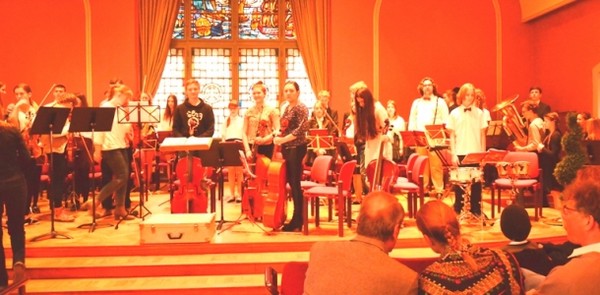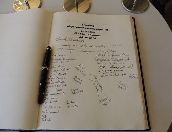 Nauczyciele towarzyszyli Orkiestrze Szkoły Muzycznej w Gołdapi, która wspólnie z Orkiestrą Stade koncertowała w sali ratuszowej miasta.