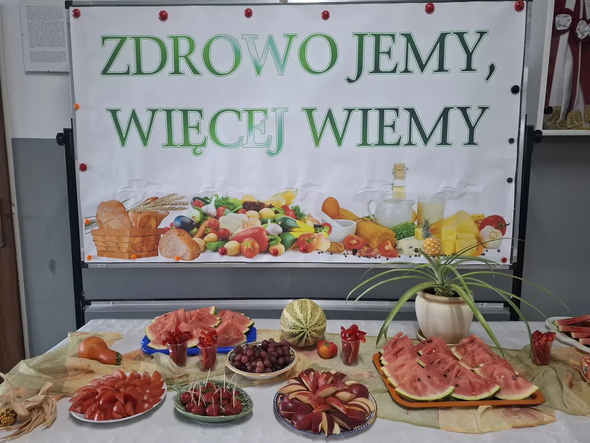 Były smaczne truskawki, jabłka, maliny, można było schrupać też papryczkę i rzodkiewki. Czerwone naturalne smakołyki szybko zniknęły ze stołów, a i soki warzywne były również rozchwytywane. Akcja "Zdrowo jemy, więcej wiemy!" jak zawsze sprawiła wiele przyjemności. Dziękujemy wszystkim, którzy się w nią aktywnie włączyli.