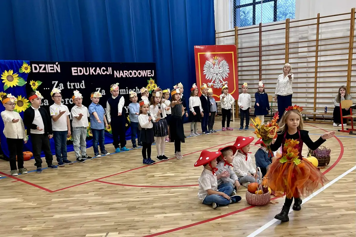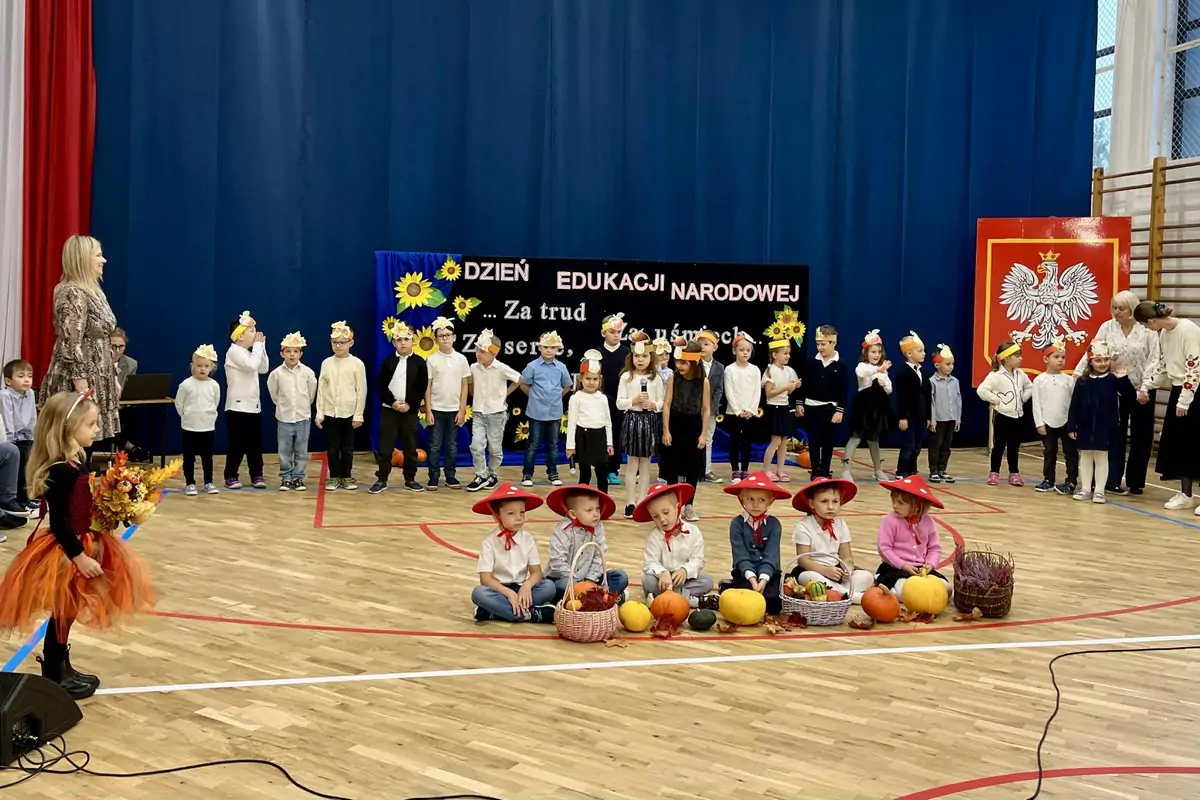 10 października nie rozpieszczał piękną aurą, ale w Szkole Podstawowej nr 2 w Gołdapi zaświeciło słońce. Postarały się o to dzieci z oddziałów przedszkolnych. Było to bardzo potrzebne, gdyż w tym dniu obchodziliśmy w naszej szkole Dzień Edukacji Narodowej. Dzień, w którym uczniowie wyrażali swoją wdzięczność i uznanie dla pięknej, aczkolwiek trudnej pracy pedagogów oraz pracowników szkoły. Maluchy w uroczy sposób rozpoczęły występ piosenką o jesieni. Mali artyści ozdobieni grzybkowymi kapeluszami i jesiennymi opaskami wprowadzili wszystkich w radosny jesienny nastrój. Towarzyszyła im wesoła Pani Jesień, która dodała występowi niezwykłego kolorytu. Uczniowie klasy 2a wierszem i piosenką podziękowali nauczycielom oraz pracownikom szkoły za opiekę, życzliwy uśmiech, trudną pracę i wytyczanie właściwych ścieżek. Uczniowie klasy 4a zaprezentowali piosenkę wraz z akompaniamentem muzycznym. Samorząd uczniowski przygotował wszystkim pracownikom szkoły miłą niespodziankę w postaci baloników - kwiatuszków, a rodzice zadbali o słodki poczęstunek. Tło uroczystości stanowiła piękna jesienna dekoracja i oprawa muzyczna. Swoje podziękowania za całoroczną pracę, wszystkim pracownikom szkoły oraz tym nauczycielom, którzy w tym roku obchodzą swój jubileusz pracy zawodowej złożyła dyrekcja szkoły.