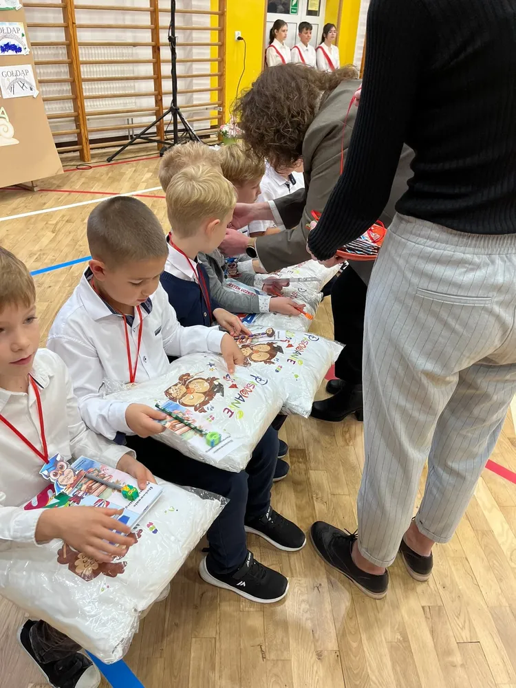Serdeczne słowa skierowali do pierwszaków dyrektor Iwona Poreda, przewodniczący rady rodziców Maciej Kordiak i koordynatorka Eko Drużyny Gołdap Alina Oleszczuk. Przedstawiciele samorządu uczniowskiego obiecali młodszym kolegom opiekę i pomoc, wręczyli drobne upominki na dobry początek. Uroczystość zakończyła wspólna słodka uczta.