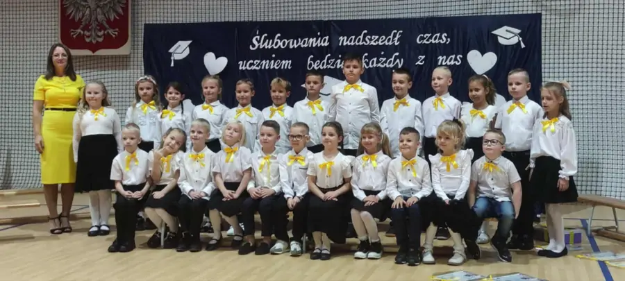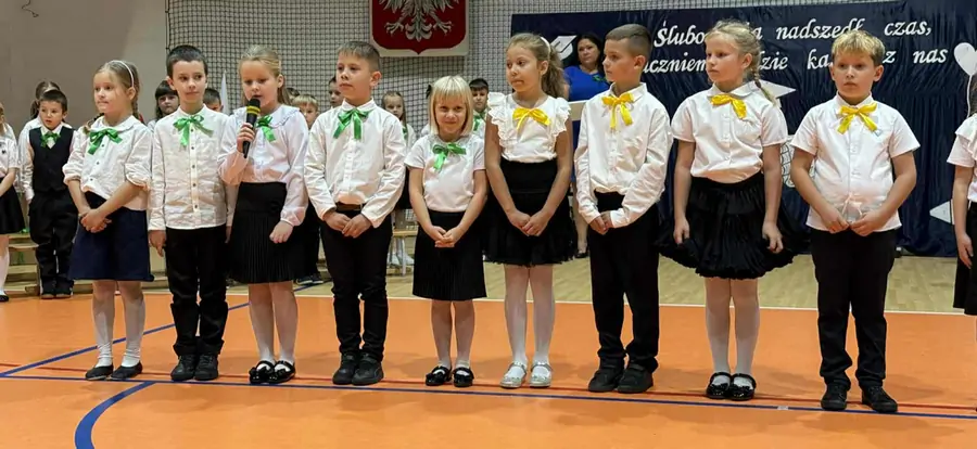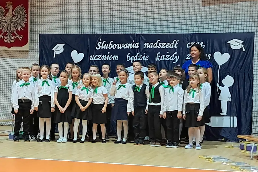 Wydarzenie to było niezwykle ważne dla najmłodszych uczniów, którzy po raz pierwszy oficjalnie zostali przyjęci do grona szkolnej społeczności. Podczas uroczystości pierwszoklasiści złożyli ślubowanie, w którym obiecali pilnie się uczyć, dbać o dobre imię szkoły, szanować nauczycieli i kolegów oraz być dobrymi Polakami. Dzieci zaprezentowały piękny program artystyczny: recytowały wiersze i śpiewały piosenki, udowadniając, że są gotowe do roli uczniów. W swoich występach pokazały, że znają polskie symbole narodowe, pamiętają o historii naszego kraju i wiedzą, jak ważne są zasady bezpieczeństwa, zdrowego stylu życia oraz kulturalnego zachowania w szkole i poza nią. Po złożeniu ślubowania uczniowie zostali pasowani na pierwszoklasistów przez dyrektora oraz otrzymali pamiątkowe dyplomy i upominki od rady rodziców oraz małego samorządu uczniowskiego.
