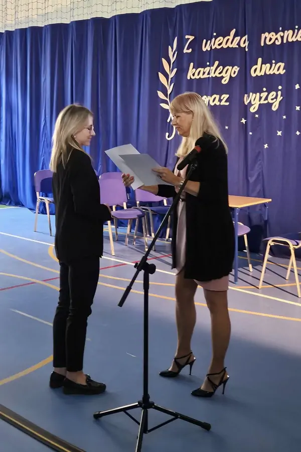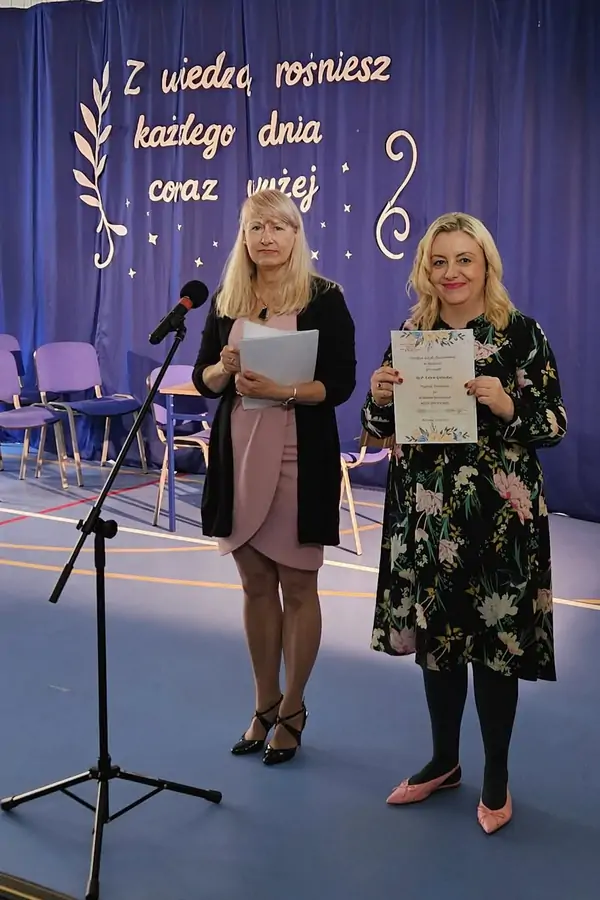 Podczas uroczystości pani dyrektor wręczyła nagrody wyróżnionym nauczycielom, dziękując im za codzienny trud, pasję i oddanie w pracy z uczniami. Nie zabrakło również serdecznych życzeń, kwiatów i ciepłych słów, które popłynęły od uczniów i rodziców.