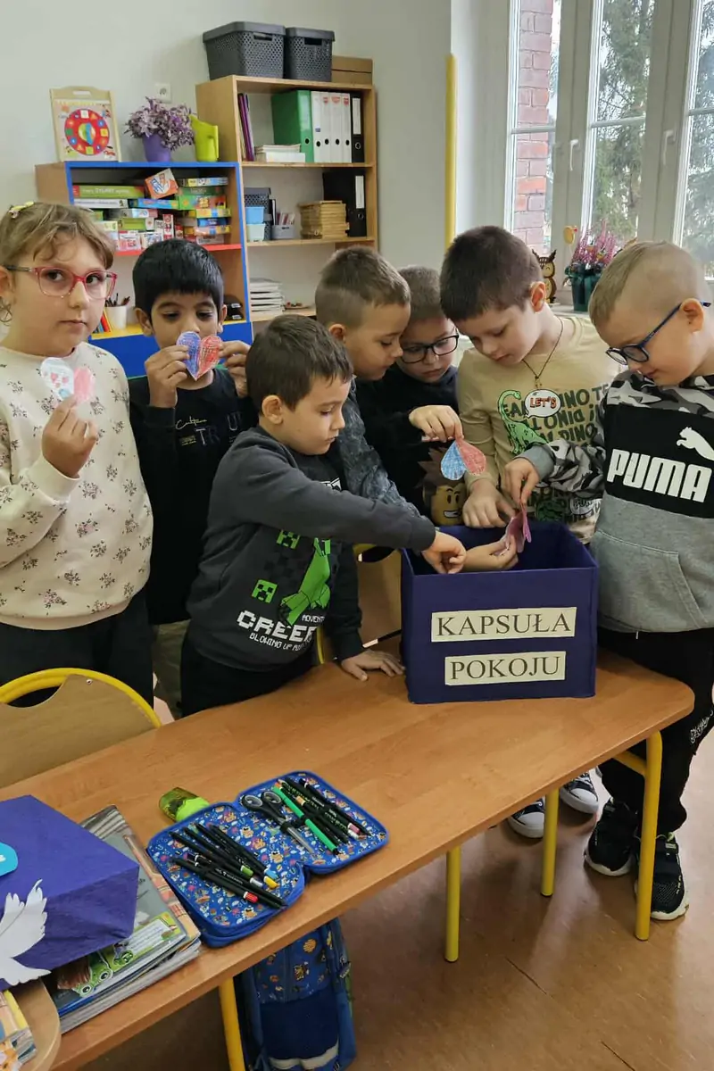 Zajęcia dla klas 1-3 łączyły naukę, zabawę i refleksję nad tym, jak każdy może przyczyniać się do budowania dobra i pokoju w swoim otoczeniu. Dzieci oglądały prezentacje multimedialne przedstawiające życie i działalność sławnego noblisty, a następnie brały udział w zajęciach praktycznych. Tworzyły „kapsułę pokoju” i „łańcuch pokoju” oraz przeprowadzały eksperymenty naukowe, które w przystępny sposób pokazały, że dobro - nawet najmniejsze - ma realną moc wpływania na świat.