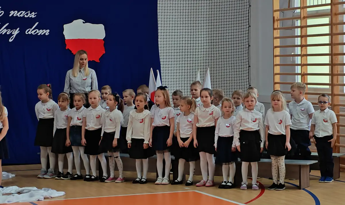 Pierwszy apel przygotowały najmłodsze klasy: 0b, 2a i 3b. Mali patrioci z ogromnym zaangażowaniem i dumą zaprezentowali program artystyczny pełen radości, emocji i symboli narodowych. Uczniowie śpiewali znane pieśni patriotyczne, które przypomniały wszystkim, jak ważne są: miłość do ojczyzny, pamięć o historii i szacunek dla narodowych tradycji. Szczególnym momentem była niezwykle wzruszająca interpretacja „Roty” w wykonaniu klasy 3b. Uczniowie zagrali utwór na dzwonkach, wzbudzając wśród zebranych ogromne emocje i dumę.