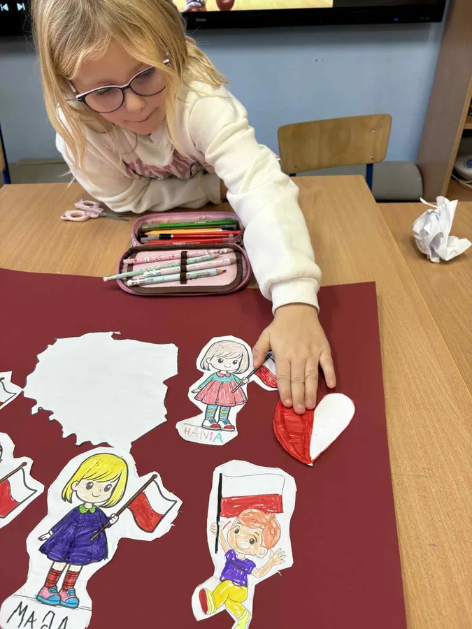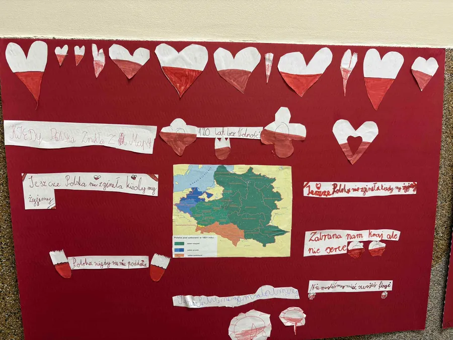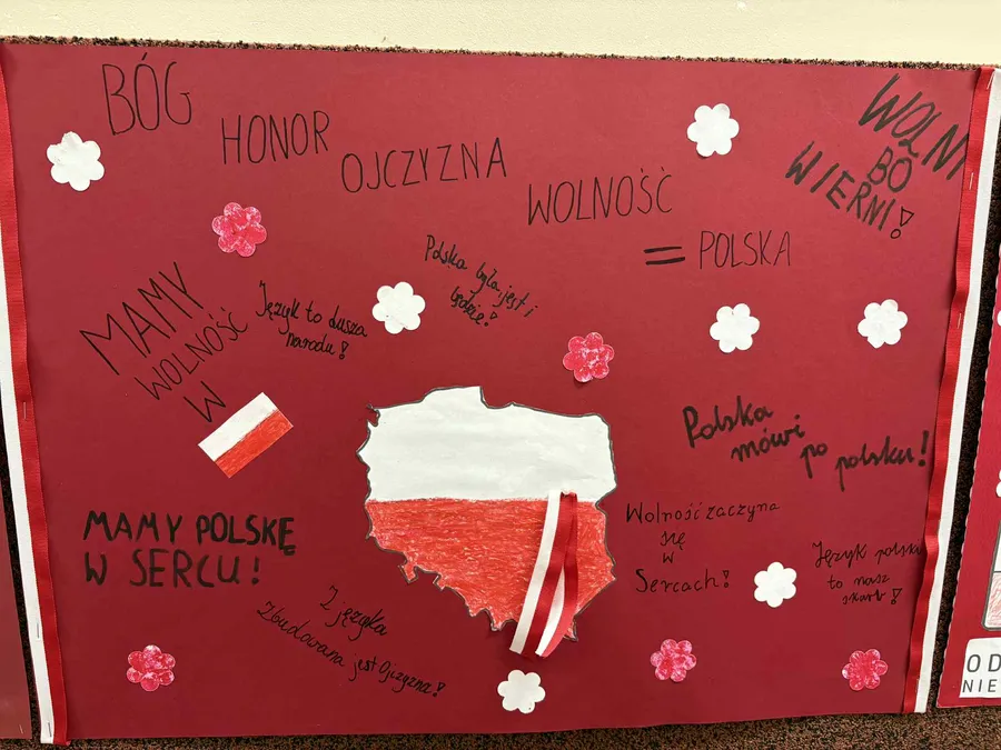 W ostatnich dniach w naszej szkole zapanował prawdziwy duch patriotyzmu. Wspólnie odkrywaliśmy, co znaczy być Polakiem, czym jest wolność i jak długa była droga naszej ojczyzny do niepodległości. Wszystkie klasy tworzyły patriotyczne tablice, pełne serc, barw narodowych i dziecięcej szczerości.