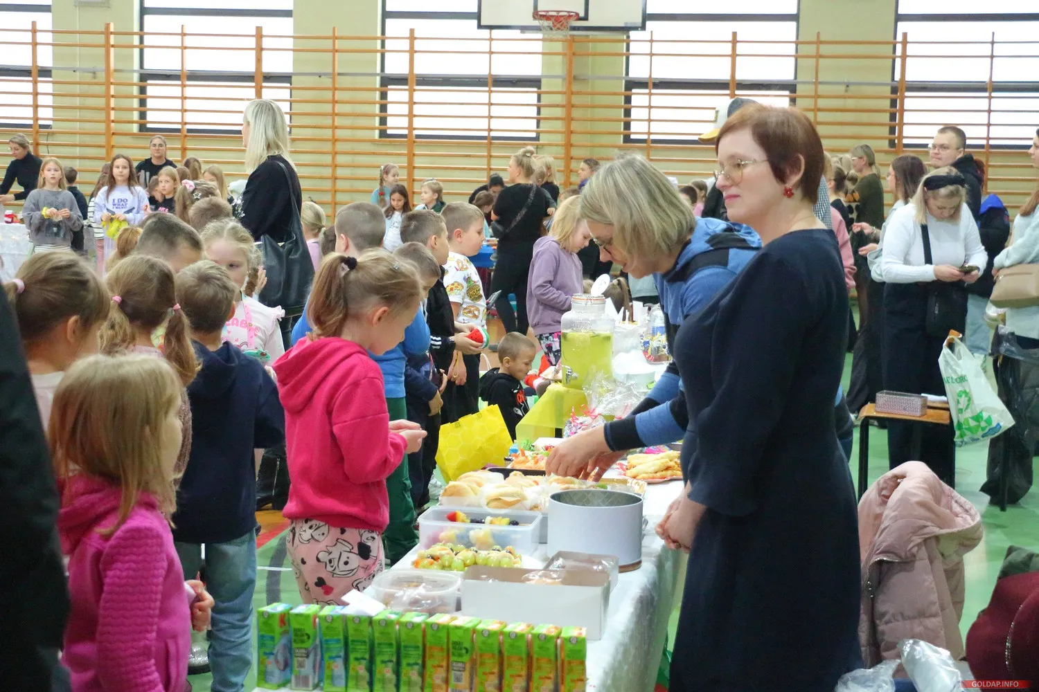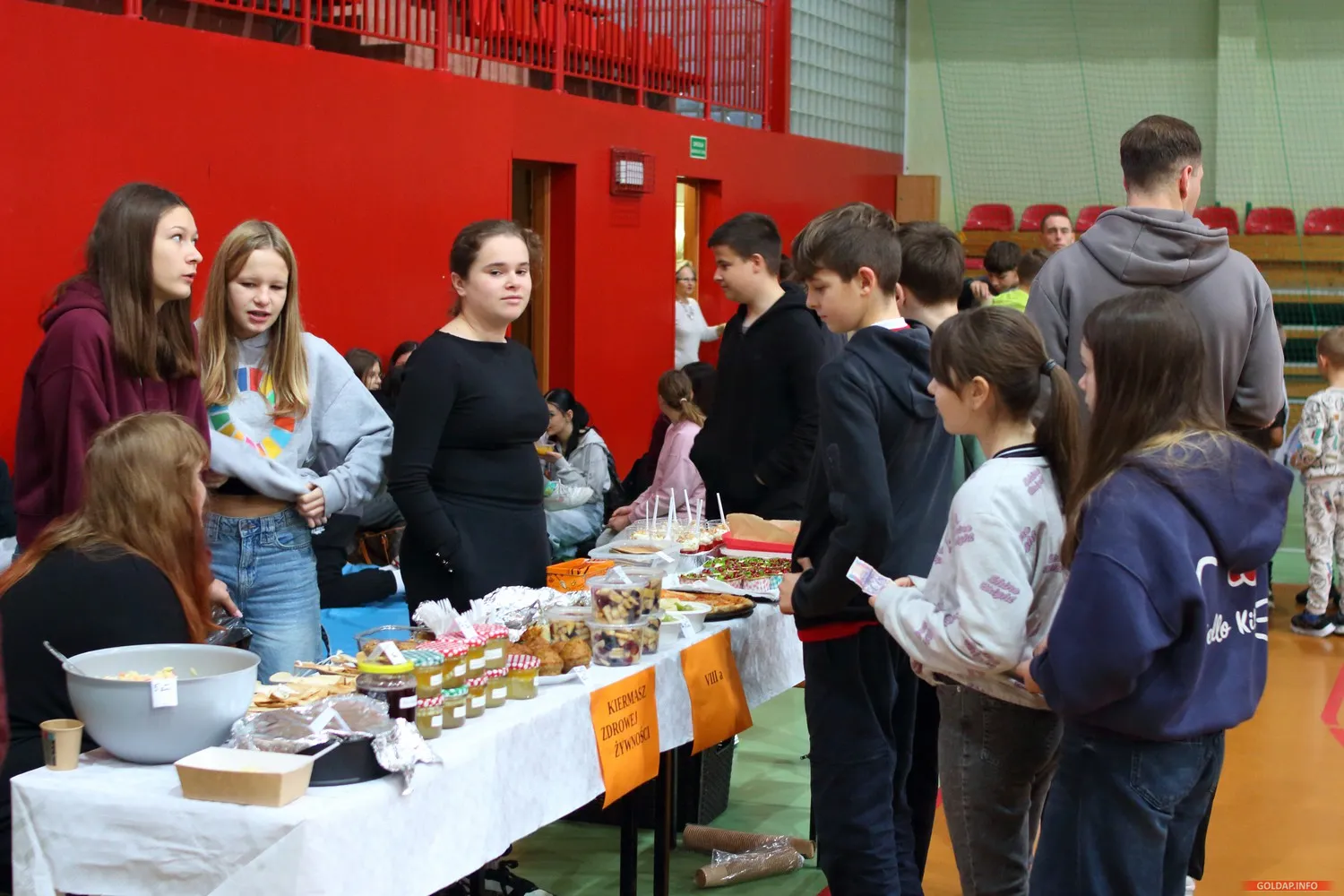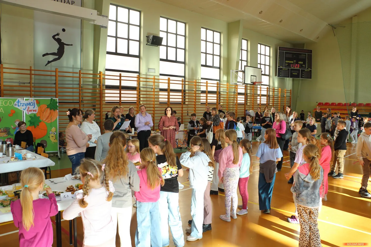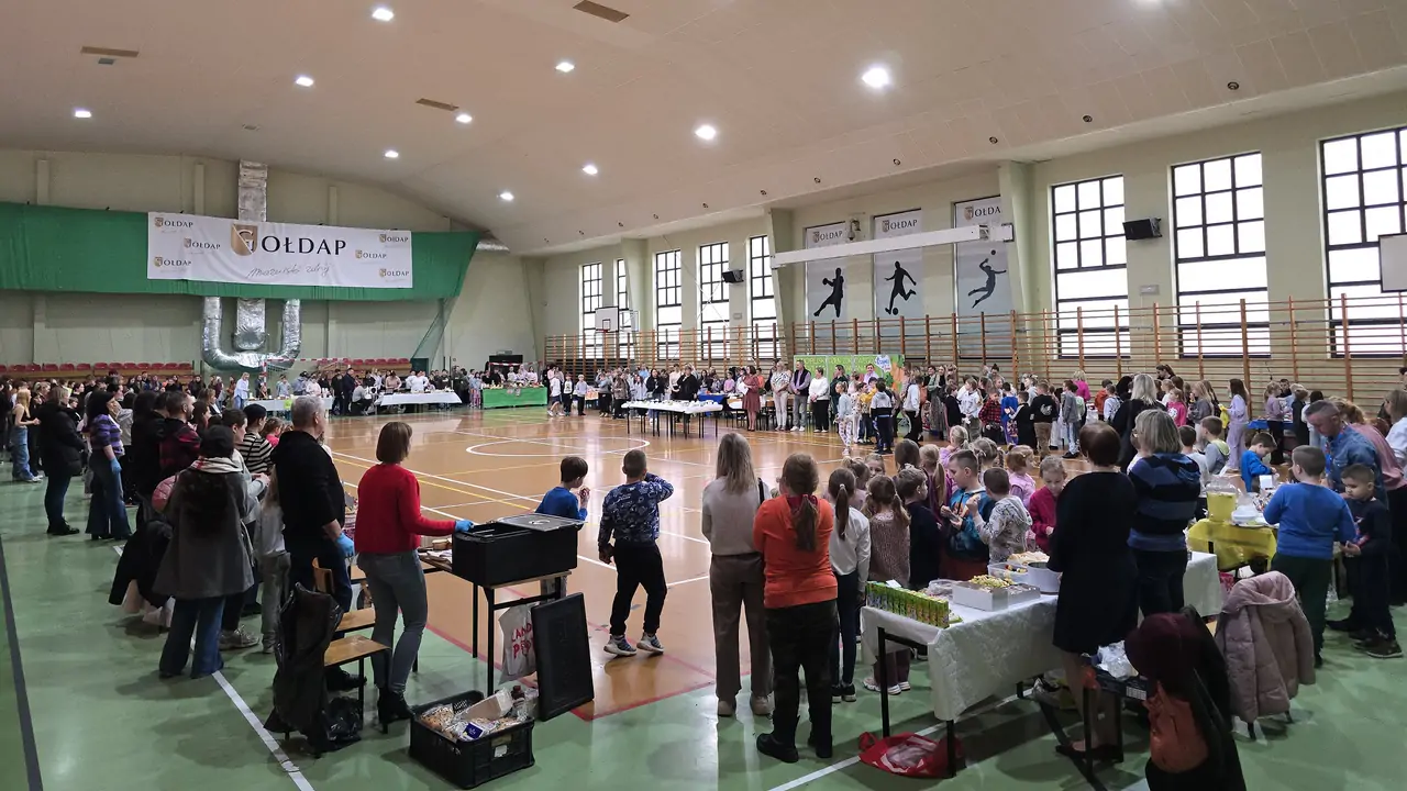 Tegoroczny odbył się dziś w hali Ośrodka Sportu i Rekreacji. Dzieci z rodzicami przygotowali różne potrawy na klasowe stoiska, od ciast przez kanapki, warzywa, owoce czy soki i napoje.
