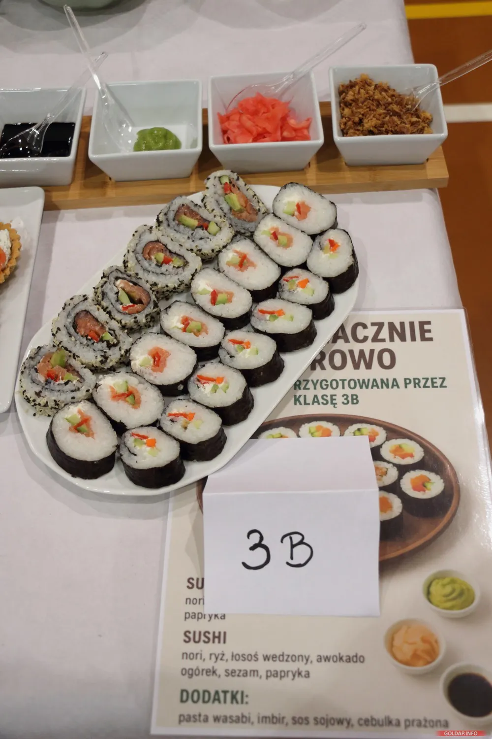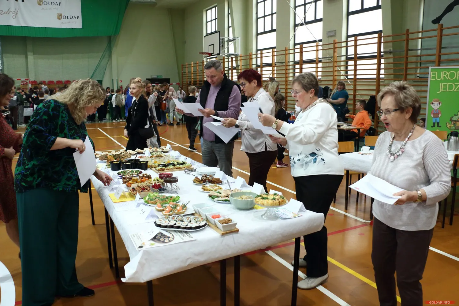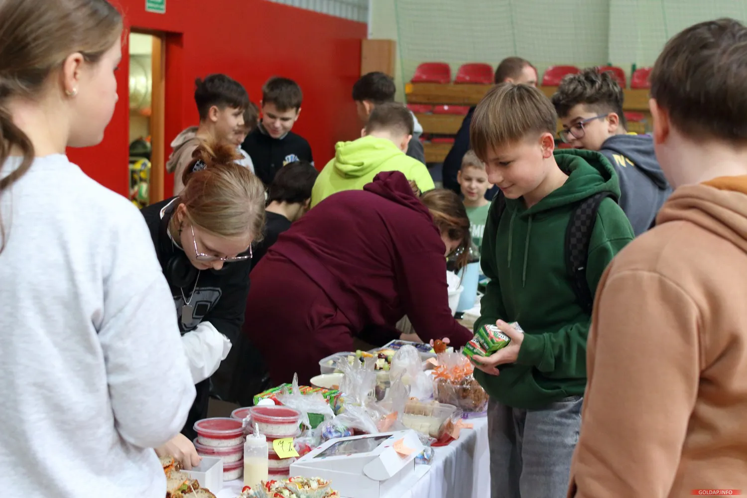 Tegoroczny odbył się dziś w hali Ośrodka Sportu i Rekreacji. Dzieci z rodzicami przygotowali różne potrawy na klasowe stoiska, od ciast przez kanapki, warzywa, owoce czy soki i napoje.