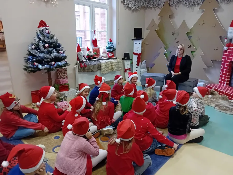 Tego dnia naszych uczniów odwiedził bardzo miły i długo oczekiwany gość - święty mikołaj. Z radością zagościł w sali lekcyjnej, obdarowując dzieci prezentami i wywołując mnóstwo uśmiechów. W podziękowaniu za upominki, pierwszoklasiści zaśpiewali mu piękną kolędę. Równie wyjątkowym punktem dnia była wizyta klasy 1a w Bibliotece Publicznej w Gołdapi. Tam czekało na uczniów kolejne, niezwykłe spotkanie z mikołajem oraz specjalnym gościem – panem burmistrzem Konradem Kazanieckim. Burmistrz przeczytał dzieciom ciekawą bajkę, którą one wysłuchały z dużą uwagą. Oczywiście nie zabrakło kolejnej porcji upominków oraz wspólnych, pamiątkowych zdjęć.